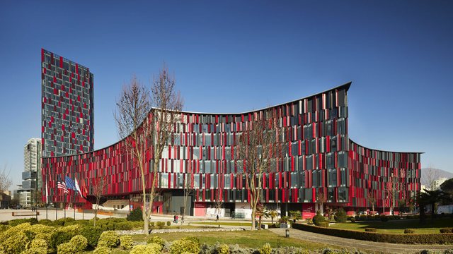 It is one of the most interesting and modern buildings is Arena Center, part of the New National Stadium Complex “Air Albania Stadium”. Near Mother Teresa Square, stands Arena Center one of the tallest and most magnificent a giant red and black complex, with the colors of Albanian flag.